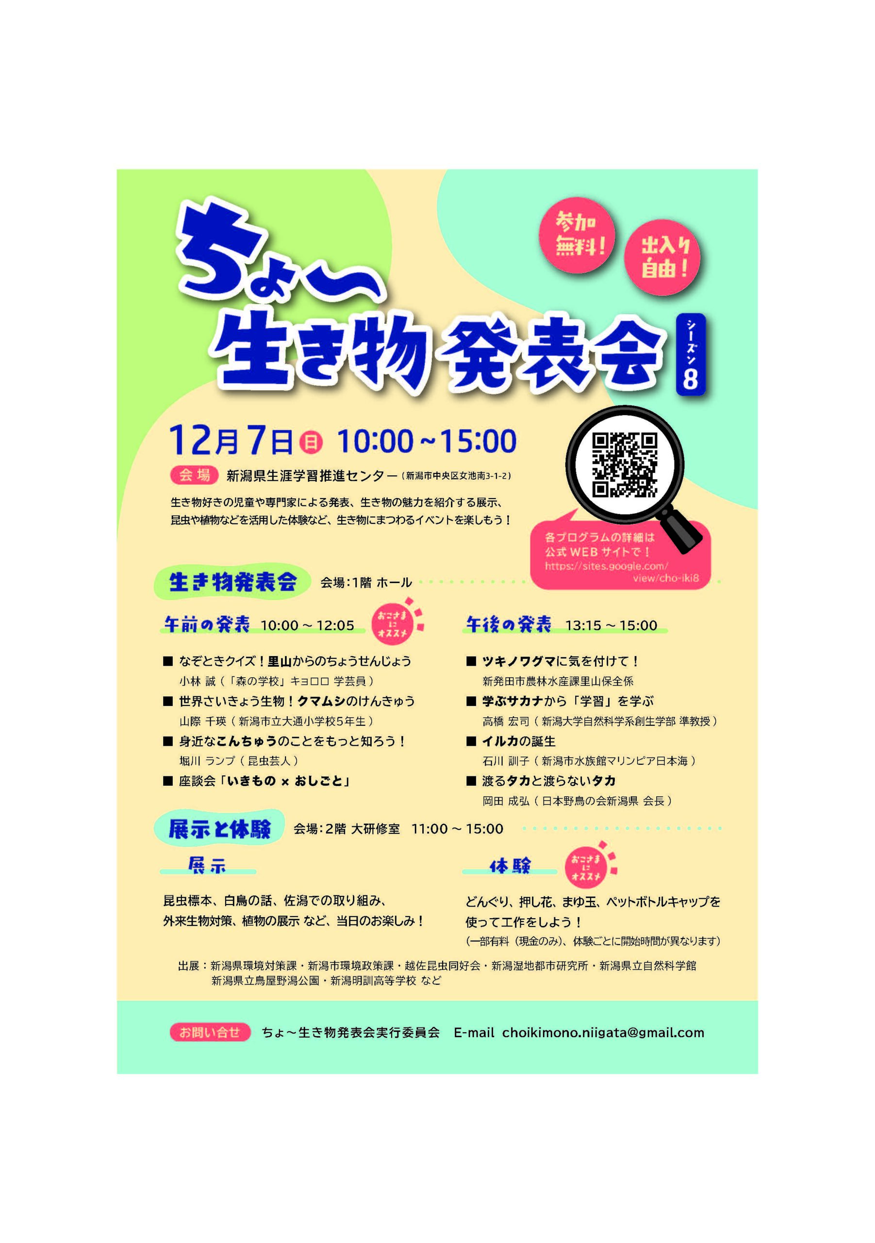 ちょ〜生き物発表会 シーズン8ちらし(JPG形式、587KB) クリックで拡大